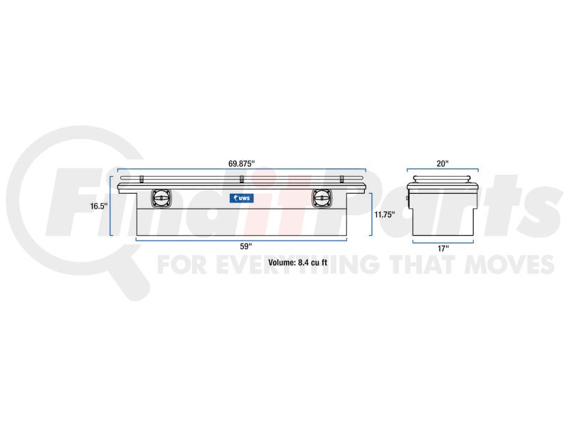 UWS SL-69-LP-MB-R - Matte Black Aluminum 69" Secure Lock Crossover Truck Tool Box, Low Profile, Rail
