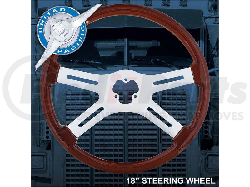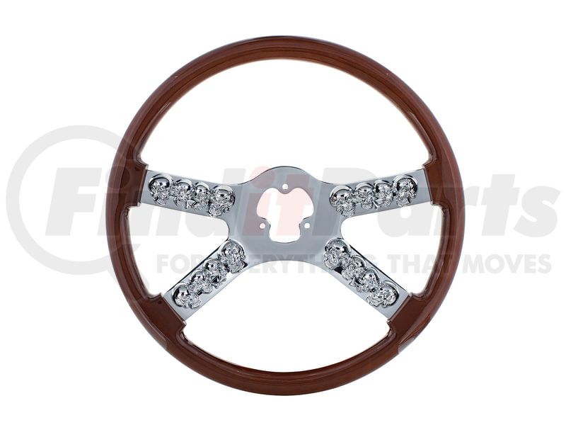 United Pacific 88174 - Steering Wheel - 18", Chrome, with Skull Accent, Wood