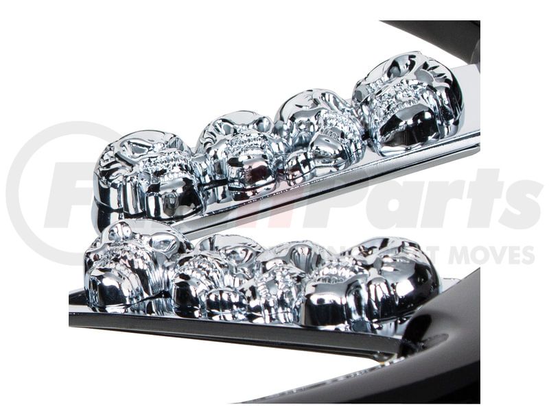 - Fitted with a chrome die-cast skull accent with unique skull design