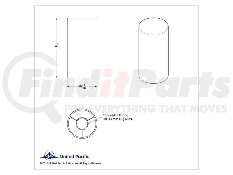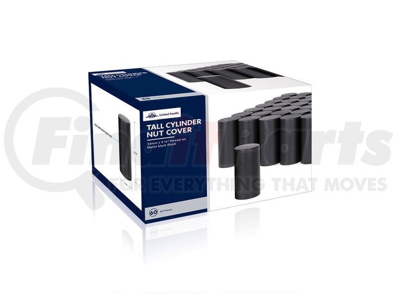 United Pacific 10190CB - Wheel Lug Nut Cover Set - 33mm x 4 1/4", Black, Tall Cylinder, Thread-On