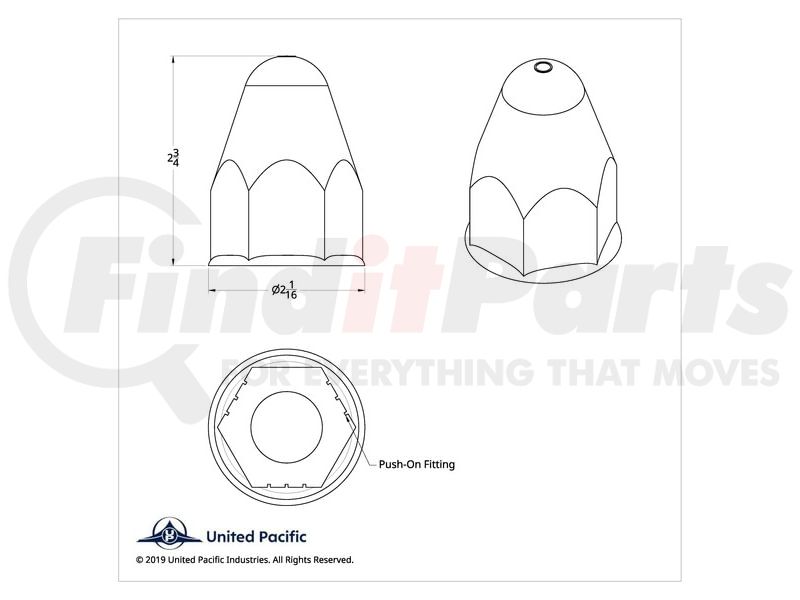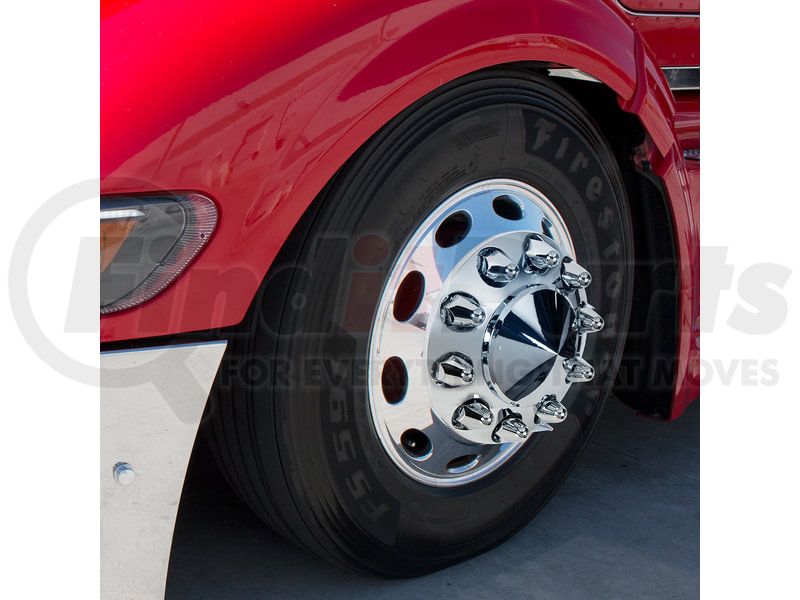 Add some flair and protection to your big rig by adding the United Pacific wheel lug nut cover set. This add-on protects the lug nuts from damaging elements while making the wheels eye catching.