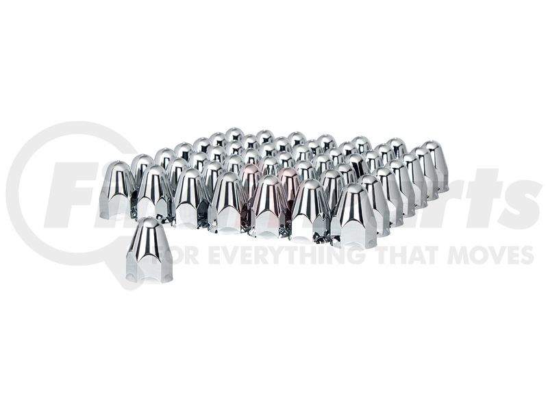 United Pacific 10045CB - Wheel Lug Nut Cover Set - 1-1/2" x 2-3/4" Chrome, Plastic, Pointed Bullet, Push-On