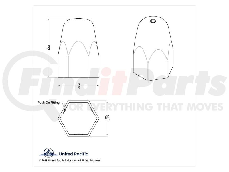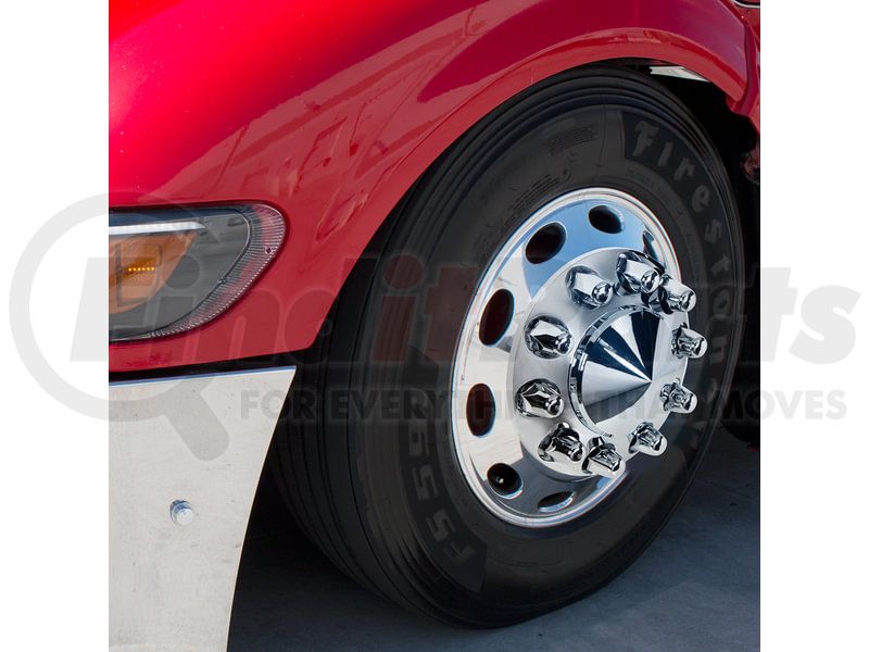 Add some flair and protection to your big rig by adding the United Pacific wheel lug nut cover set. This add-on protects the lug nuts from damaging elements while making the wheels eye catching.