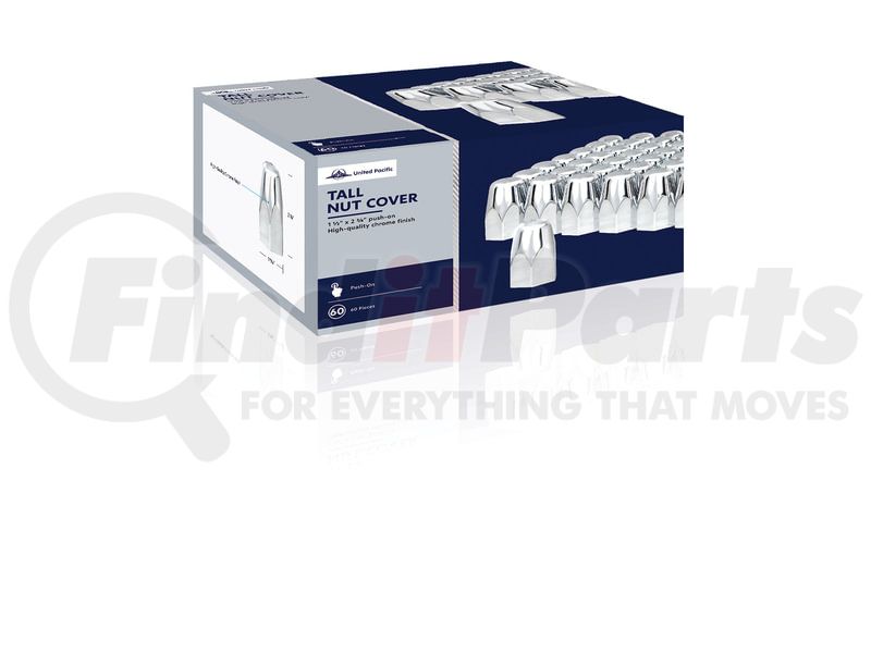 United Pacific 10084CB - Wheel Lug Nut Cover - 1.5" x 2 3/4", Universal, Chrome, Tall, Push-On Style, Plastic