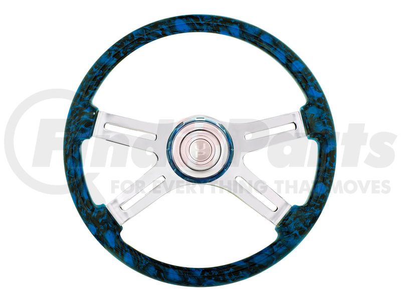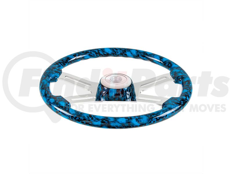 Steering Wheel - 18" 4 Spoke Skull, with Matching Skull Horn Bezel, Blue