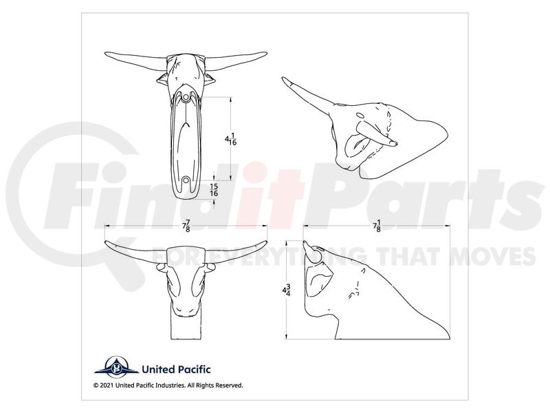 United Pacific 72034 - Hood Ornament - Chrome, Long Horn Bull