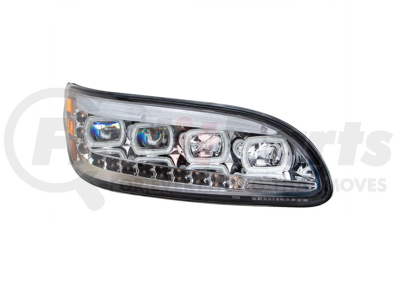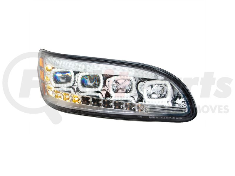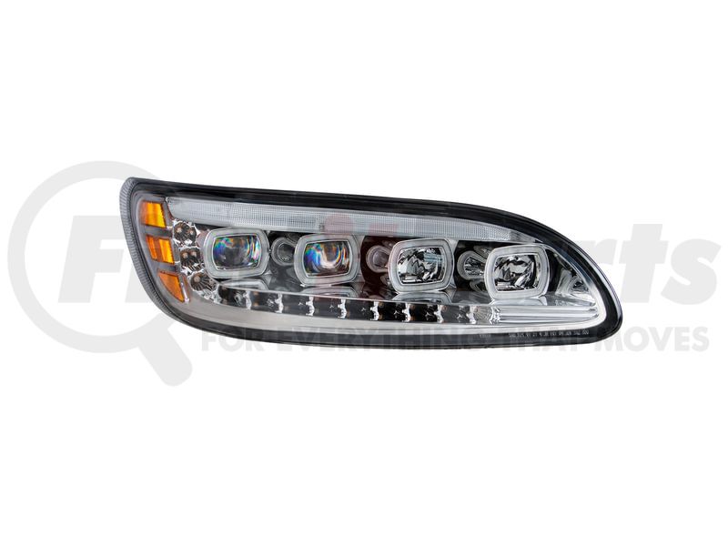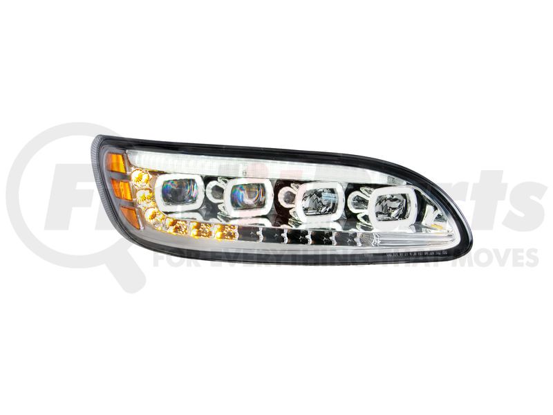 United Pacific 35842 - Quad-LED Chrome Headlight with LED Sequential Turn Signal and DRL for 2005-15 Peterbilt 386 - Passenger Side