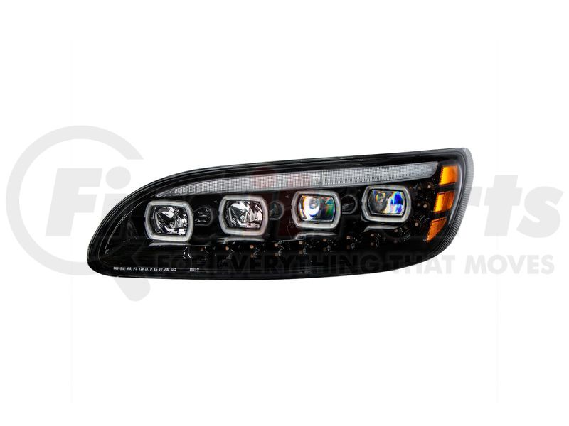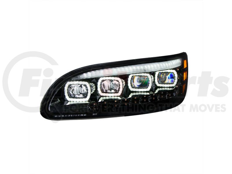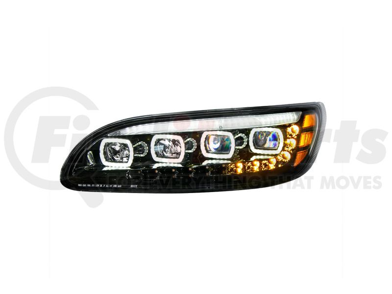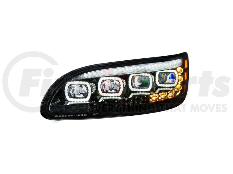 United Pacific 35843 - Quad-LED Black Headlight with LED Sequential Turn Signal and DRL for 2005-15 Peterbilt 386 - Driver Side