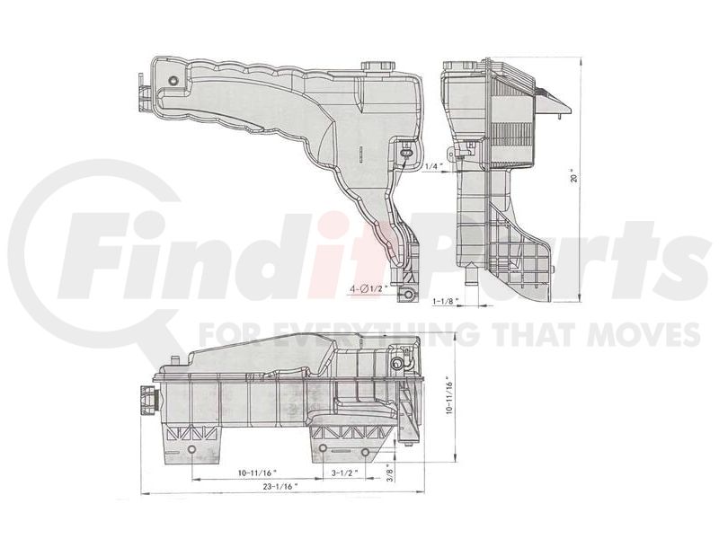 Engine Coolant Reservoir - Pressurized, with Coolant Level Sensor, For 2013-2021 Kenworth T680