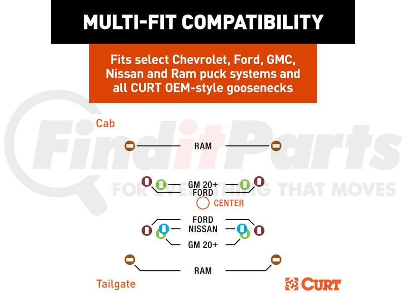- Multi-fit design fits select Chevrolet, Ford, GMC, Nissan and Ram puck systems