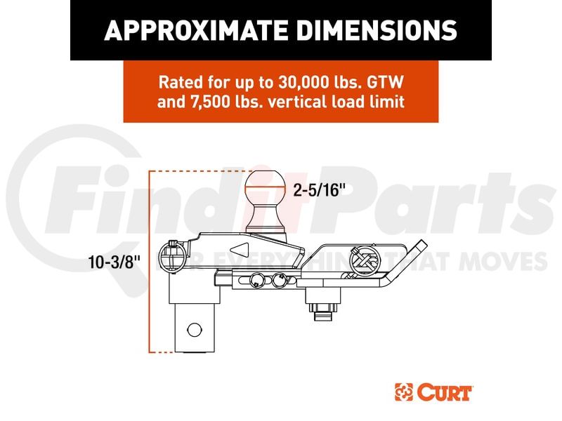 - Rated for up to 30,000 lbs. gross trailer weight and 7,500 lbs. vertical load