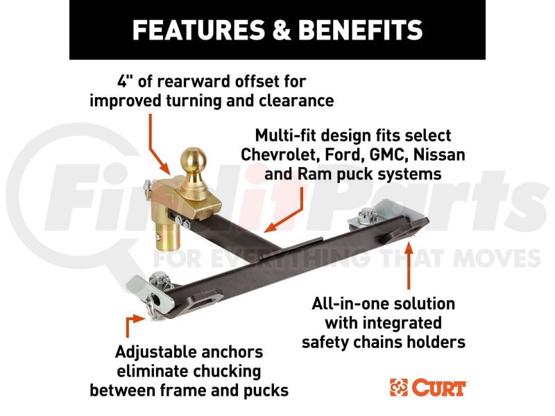 - Includes standard 2-5/16" diameter gooseneck ball with 4" rearward offset