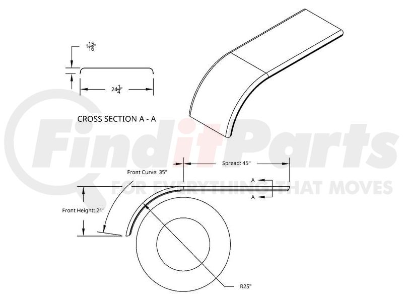 80" 430 Stainless Steel SE Series Smooth Half Fender, Pair, 16 GA