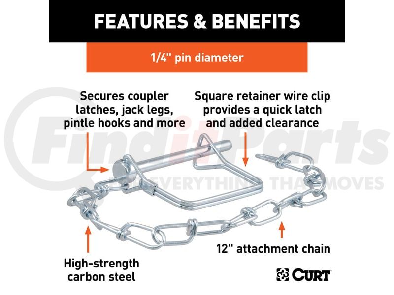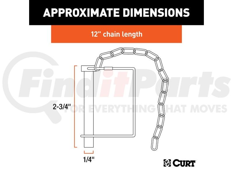 CURT Manufacturing 25012 - 1/4in. Safety Pin with 12in. Chain (2-3/4in. Pin Length)