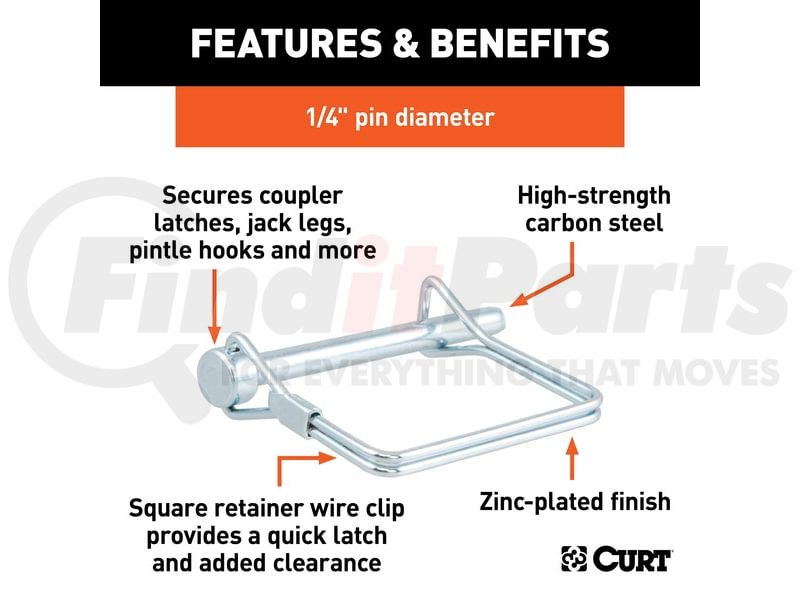 - 1/4" diameter pin secures coupler latches, jack legs, pintle hooks and more