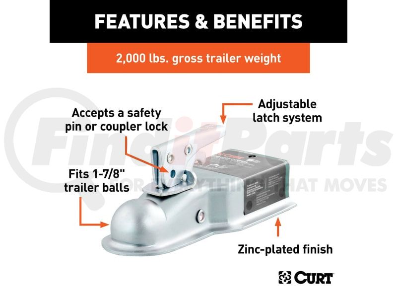 CURT Manufacturing 25131 - 1-7/8in. Straight-Tongue Coupler with Posi-Lock (3in. Channel; 2;000 lbs; Zinc)