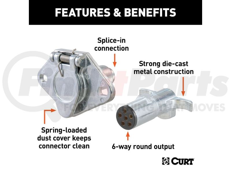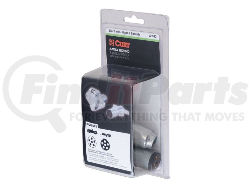 CURT Manufacturing 58092 - 6-Way Round Connector Plug/Socket (Packaged)