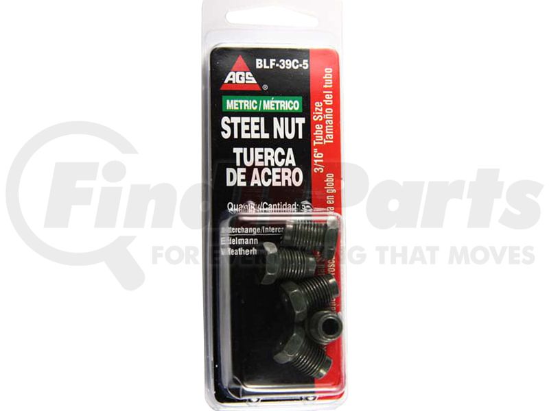 AGS Company BLF-39C-5 - Steel Tube Nut, 3/16 (M10x1.0 Bubble), 5/card