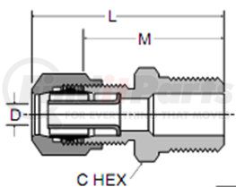 Connector Male, Brass, 3/8 x 1/4, for Nylon Tubing