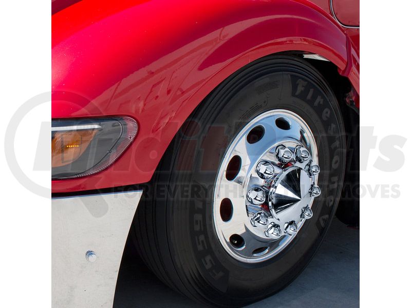 Add some flair and protection to your big rig by adding the United Pacific wheel lug nut cover set. This add-on protects the lug nuts from damaging elements while making the wheels eye catching.