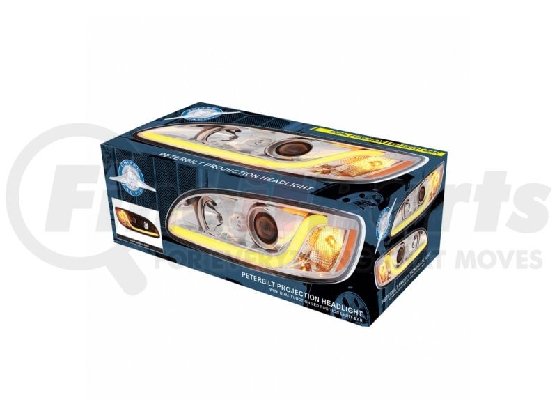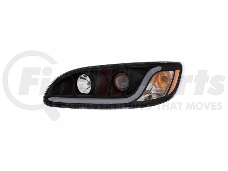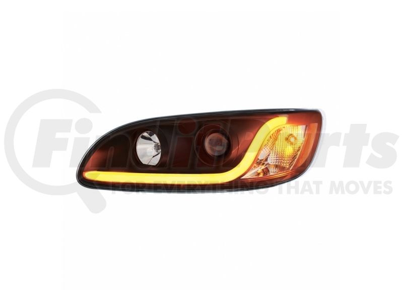 United Pacific 31239 - Black Projection Headlight with LED DF Light Bar for Peterbilt 386 (05-15), 387 (99-10) - Driver Side