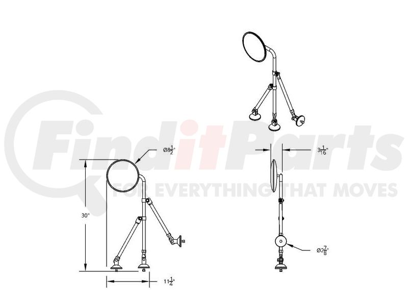United Pacific 60036 - Fender Mirror - Tripod, 8 1/2", Stainless