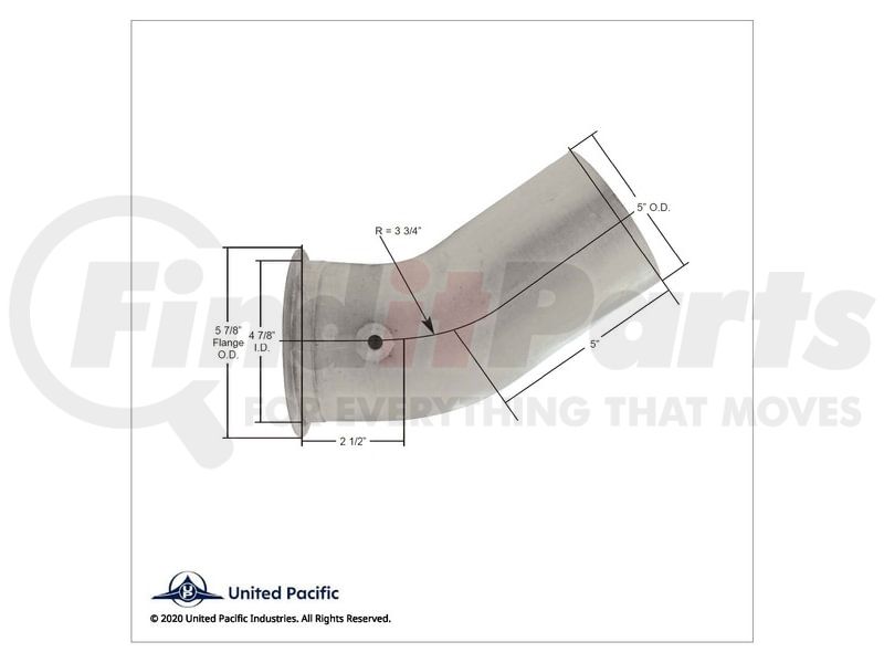 United Pacific FLCA-16460-009 - Exhaust Elbow - Aluminized, for Freightliner Classic, OEM No. 04- 16460- 009