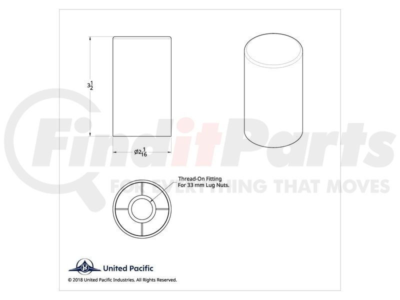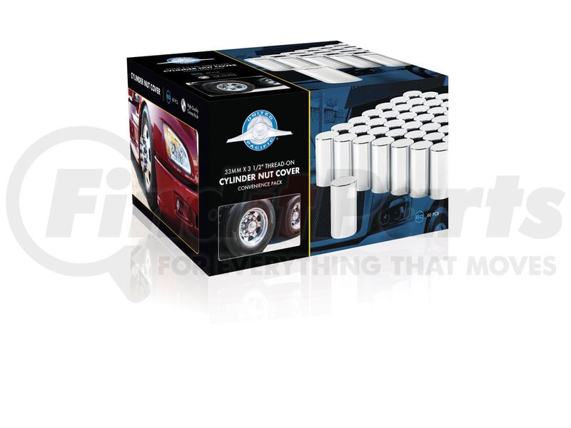 United Pacific 10013CB - Wheel Lug Nut Cover Set - Box of 60, 33mm x 3-1/2" Chrome, Plastic, Cylinder, Thread-On